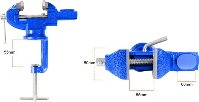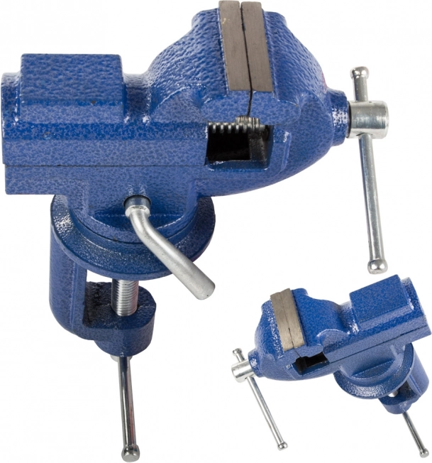 Univerzalni vrtljivi primež iz trdne litine za delavnico in garažo. Ponuja vrtljivo osnovo 360°, robustno konstrukcijo, vgrajeno nakovalo in zanesljivo pritrditev na delovno mizo do približno 55 mm. Idealen za obdelavo kovin, cevi, tiskana vezja in druge materiale.