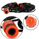 Uživajte v osvežilnem poletnem udobju z 15 m dolgim vrtnim sistemom za meglenje. Ustvarja fino vodno meglico, ki zniža temperaturo okolice do 10 °C, poveča udobje na terasi in na vrtu ter hkrati pomaga pri učinkovitem zalivanju rastlin. Zahvaljujoč nastavljivim šobam in enostavni priključitvi na vrtno cev je namestitev in uporaba hitra in preprosta.