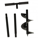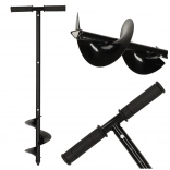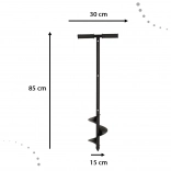 T‑ročaj širine 30 cm zagotavlja zanesljiv oprijem in odličen nadzor pri vrtanju. Spiralno rezilo s premerom 15 cm in skupna dolžina 85 cm omogočata hitro izvrtati luknje za sadike in manjše stebričke brez odvečnega napora.
