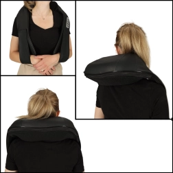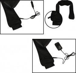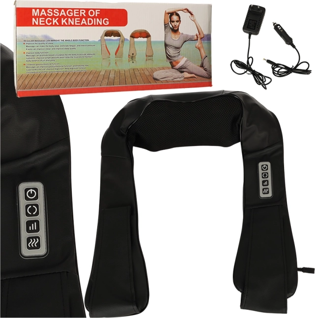 Upravljalna plošča na samem ovratniku omogoča preklop smeri vrtenja, nastavitev intenzivnosti in samostojno vklop/izklop toplote. Trpežna izvedba iz eko usnja in zračna kontaktna cona se enostavno čistita in sta prijetna za nošenje. V paketu najdete tako omrežni napajalnik kot tudi avtomobilski adapter za udobno uporabo na poti.