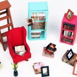 Odkrijte čar miniaturne knjižnice, ki vas s svojimi detajli povede v svet zgodb. Komplet ROBOTIME je odlična izbira za vse, ki uživajo v kreativnem počitku in želijo svoj dom okrasiti s stilno dekoracijo. LED osvetlitev pričara toplo in prijetno vzdušje, zaradi katerega model zaživi tudi po temi.