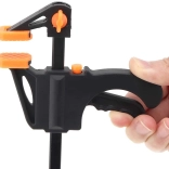 Ta lahka in trpežna enoročajna objemka je idealna za mizarstvo, montažo in DIY projekte. Hitrospenjalni drsni sistem omogoča udobno upravljanje z eno roko, medtem ko gumiran sprožilec pomaga gladko dozirati vpenjalni tlak. Z zamenjavo zgornje čeljusti preprosto spremenite način in orodje uporabite kot razpiralnik.
