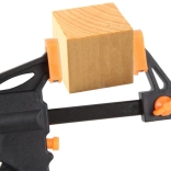 Široke čeljusti s plastičnimi ščitniki ščitijo obdelovanec pred udrtinami in praskami. Objemka je odlična za lepljenje, fiksiranje pri vijačenju in natančno sestavljanje delov.