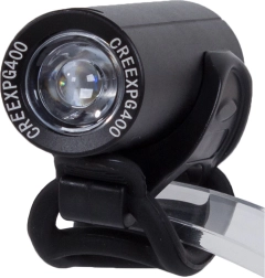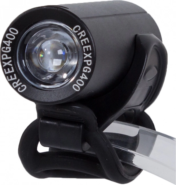 Varnejša vožnja v temi in dežju s kompaktno sprednjo svetilko iz letalskega aluminija z LED CREE XPG400 in svetlobnim tokom 350 lm. Ponuja 4 načine osvetlitve (100 %, 75 %, 50 %, stroboskop), vodoodpornost IPX6, polnjenje prek USB in gumirano stikalo. Enostavna montaža na krmilo s priloženim nosilcem.
