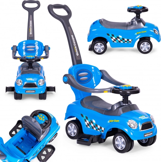 Otroški poganjalec 3v1 z volanom in zvoki - moder