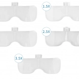 Opremljeno je s sistemom zamenljivih leč z različno stopnjo povečave. Paket vsebuje skupaj 5 leč s povečavo: 1X, 1,5X, 2X, 2,5X in 3,5X, ki omogočajo prilagoditev glede na potrebe.