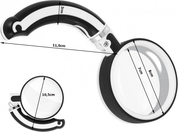 Klasična zložljiva lupa je odličen pripomoček za različne namene, bodisi za nakit, znamke ali vsakodnevno uporabo. Zaradi svoje lahke in kompaktne konstrukcije je enostavno prenosljiva in jo je mogoče preprosto shraniti v žep.