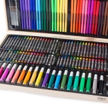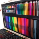 Celovit likovni set v elegantnem lesenem kovčku za otroke in odrasle ponuja do 180 delov za risanje in slikanje. Zahvaljujoč praktičnemu kovčku z ročajem imate vse pregledno na enem mestu in preprosto prenosljivo. Idealno za razvoj kreativnosti, vadbo različnih tehnik in neskončno ustvarjanje doma, v šoli in na poti.