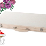 Trdno leseno ohišje s kovinskimi zaponkami in ročajem ščiti vsebino, olajša prenašanje in odlično izgleda tako na mizi kot v otroški sobi.