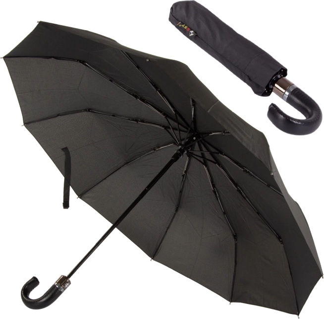 Eleganten avtomatski dežnik za vaše udobje in slog v vsakem vremenu. Izdelan iz kakovostnih materialov, zagotavlja zaščito pred soncem in dežjem. Zaradi močne konstrukcije kljubuje močnemu vetru, njegova črna barva pa je vedno v modi.