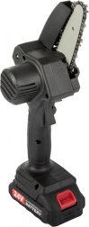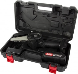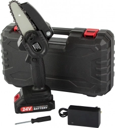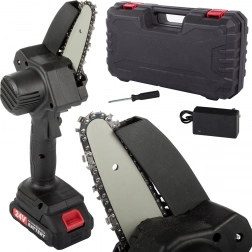 Kompaktna mini akumulatorska verižna žaga za hitra opravila na vrtu in okoli hiše. Zahvaljujoč 6-palčni mečnici je lahka, dobro vodljiva in pripravljena za uporabo kjerkoli. Brez potrebe po bencinu, nizka obraba in enostavno shranjevanje v trpežnem kovčku jo delajo idealno izbiro za obrezovanje in manjša žaganja.