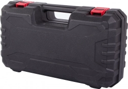 Trpežen plastičen kovček z močnimi zapirali ščiti žago in dodatke ter olajša prenašanje in shranjevanje.