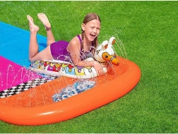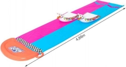 Dva vzporedna pasova dolžine 4,88 m omogočata otrokom dirkanje in uživanje v dolgem, hitrem spustu z vodnimi prhami po celotni progi.