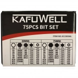 Univerzalni komplet nastavkov KAFUWELL s 75 deli združuje zmogljivost in natančnost za delavnico in dom. Trpežni nastavki iz zlitine CrV, kratke in dolge izvedbe, tipi HEX, RIBE, SPLINE, TORX in TORX Security ter dodatno 3 redukcije 1/2" in 3/8". Pregleden praktičen transportni kovček ohranja red in olajša prenašanje.
