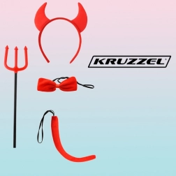 Popoln kostum hudička za otroke in odrasle s 4 dodatki: rogovi na obroču, mašna, rep in trozob. Univerzalna velikost z elastičnimi gumicami zagotavlja udobno nošenje. Odlična izbira za Noč čarovnic, karneval, rojstnodnevne zabave ali tematske dogodke – v hipu ustvarite vpadljiv in zabaven kostum.