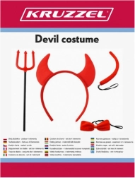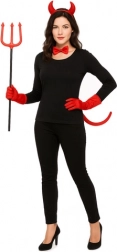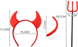 Rogovi, mašna, rep in trozob – vse usklajeno v rdeči barvi za takojšnji hudičev videz brez dodatnega iskanja dodatkov.