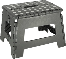 Ta kompaktni zložljiv stolček je odličen pomočnik povsod, kjer potrebujete hitro stabilno oporo ali nizko sedenje. Lahka in trpežna plastična konstrukcija se zlahka zloži in razpre, nedrseča zgornja površina in čvrsta osnova pa zagotavljata varno uporabo.
