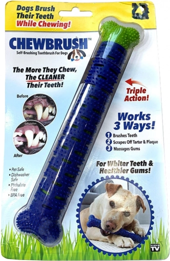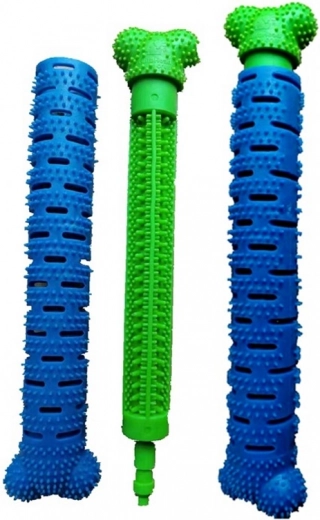 - Opremljena z utori in režami, ki pomagajo odstranjevati nabrano hrano, zobne obloge in zobni kamen. Ima tudi predelek za pasjo zobno pasto, ki se med žvečenjem počasi sprošča.