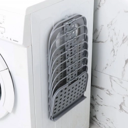 Viseča košara/organizator za perilo je idealna za majhno kopalnico, kjer ni prostora za stalno košaro. Praktično jo lahko obesite na vrata katere koli omare ali pralnega stroja.