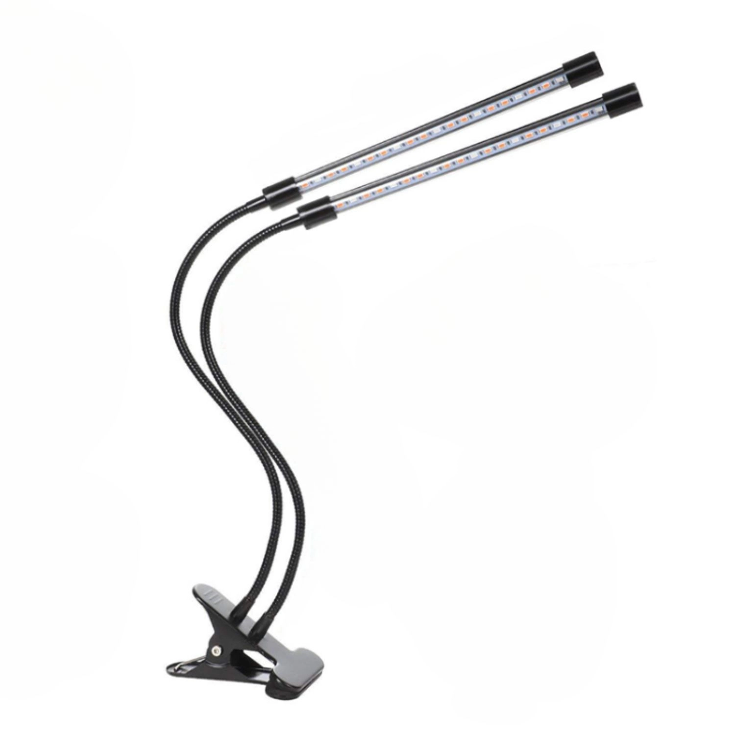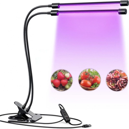 Dve neodvisno nastavljivi glavi z upogljivimi “gosičjimi” vratovi usmerita svetlobo natančno k listom in sadikam, na polici ali okenski polici.