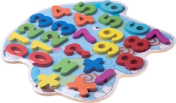 Otroci si igrivo osvojijo številke 0–9 in prve računske korake zahvaljujoč preglednim, barvitim koščkom, ki natančno ustrezajo podlagi.
