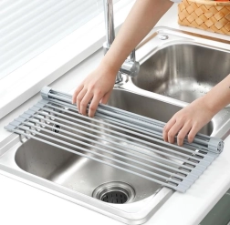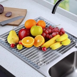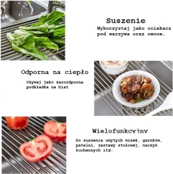 Odcejalna podloga v obliki zložljive podloge je zelo uporaben pripomoček v kuhinji. Zasnovana je tako, da se enostavno zrola in zavzema minimalno prostora, ko ni v uporabi. Z njim lahko enostavno izperete sadje in zelenjavo ali osušite posodo, kjer voda steče neposredno v korito in posoda hitro posuši. Preprosto vzdrževanje brez zapletenosti - preprosto izperite in pustite, da se posuši. Primerna tako za moderne kot klasične kuhinje.