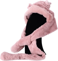 Ljubka in praktična otroška kapa 3-v-1 združuje kapuco, šal in rokavice v enem. Iz mehkega plišastega materiala bo grela otroke med zimskimi sprehodi, na smučanju in pri drsanju. Idealna za deklice, stare 2–12 let.