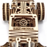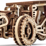 Sestavljanje je intuitivno in ne zahteva lepila, priporočljivo pa je navoskati osi in zobnike za gladko delovanje. Gumirana kolesa izboljšajo oprijem, vztrajnikova mehanika pa poskrbi za zabavno premikanje modela naprej.