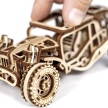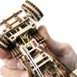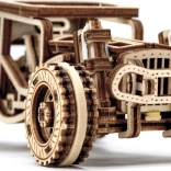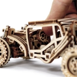 Ta realistični model buggyja v merilu 1:32 združuje premišljeno zasnovo in mehanske funkcije, ki navdušijo tako pri gradnji kot pri vožnji. Zahvaljujoč z laserjem izrezanim delom iz brestove vezane plošče se vse natančno prilega, rezultat pa je impresiven zbirateljski kos in poučna sestavljanka.