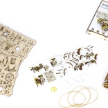 Z laserjem izrezani deli iz brestove vezane plošče se natančno prilegajo. Za gladko delovanje je dovolj po navodilih navoskati osi in zobnike.