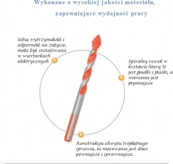 Ta univerzalni vrtalnik je zasnovan tako, da zagotavlja visoko natančnost in vzdržljivost tudi pri delu z zahtevnimi materiali. Posebna konstrukcija spirale omogoča učinkovito vrtanje, zato se vam ni treba bati poškodb ali obrabe rezila. Končni izdelek je vedno kakovosten in izpolnjuje pričakovanja tudi najzahtevnejših uporabnikov.