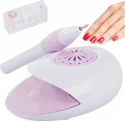 Brusilnik je dopolnjen s petimi zamenljivimi nastavki za različna opravila – od oblikovanja do poliranja. Sušilnik pospeši sušenje laka, zato vam ni več treba čakati, da se lak naravno posuši. Komplet je idealen za vse tipe nohtov in udobno vsakodnevno uporabo.