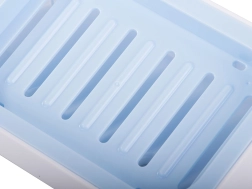 Odstranljiva rešetka z drenažnimi režami odvaja vodo, zato milo ne razmoči in zdrži dlje.