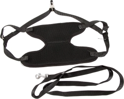 Trakove zlahka prilagodite za popolno prileganje. Zasnova preusmeri silo vleka stran od vratu – večja varnost in udobje.