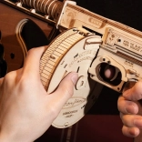 Ta lesena mehanska sestavljanka prinaša realističen občutek ikoničnega mitraljeza THOMPSON. Zaradi natančnega laserskega izreza se deli popolno prilegajo, zato je sestavljanje tekoče in zadovoljivo. Po dokončanju dobite impresiven model z delujočim elastiknim mehanizmom, ki dejansko strelja.