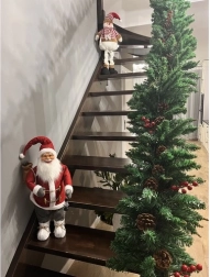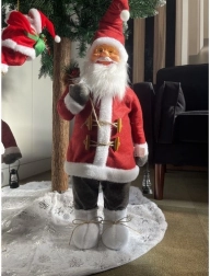 Ta očarljivi SANTA v tradicionalnem rdečem plašču z belim robom in ikončnimi zlatimi očali prinese v notranjost toplino in čar božiča. Idealen je kot dominantna dekoracija na tleh, ob božičnem drevesu ali v izložbi.