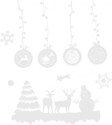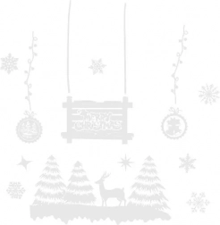 Set vključuje priljubljene motive: božično drevesce, jelene, snežaka, viseče bunkice, snežinke in napis Merry Christmas. Zaradi univerzalne bele barve se podajo v vsak interier in izložbo ter podpirajo praznično vzdušje skozi celoten advent.