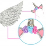 Ta naglavni trak vsakega otroka spremeni v magičnega samoroga zahvaljujoč elegantnemu srebrnemu rogu in dekorativnim cvetovom.