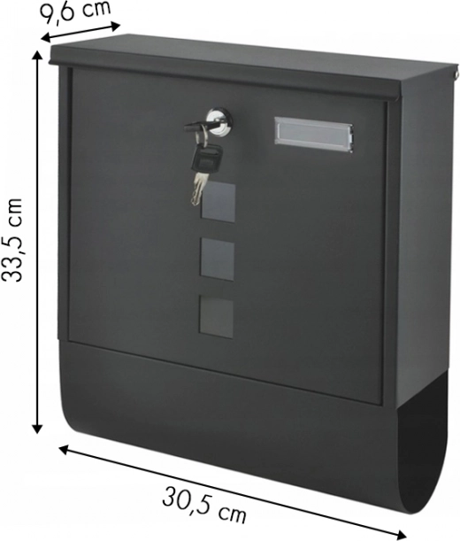 Ta moderen poštni nabiralnik je idealna izbira za katero koli ograjo ali fasado hiše. Njegov univerzalni dizajn ga naredi za popoln dodatek za stanovanjske, komercialne in pisarniške objekte. Nabiralnik je opremljen s kontrolnimi okenci, s katerimi zlahka preverite, ali imate novo pošto.