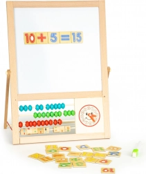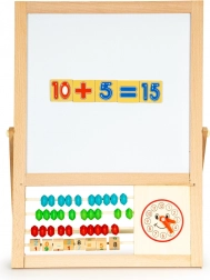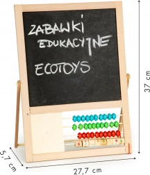 Raziskujte neskončne možnosti s to izjemno tablo! Lesena stabilna konstrukcija ponuja dvostransko površino - tradicionalno črno za risanje s kredo in belo za floomastre ter magnetne številke. Mladi umetniki in raziskovalci ne bodo le ustvarjali svoja mala umetniška dela, temveč se lahko tudi igrajo šolo ali besedne igre.