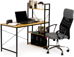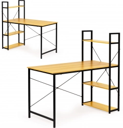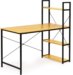 Če iščete kombinacijo modernega dizajna in funkcionalnosti, je ta računalniška miza z loft policami idealna izbira. Delovna površina iz naravnega lesa, podprta s črnim kovinskim ogrodjem, bo vaši domači pisarni ali delovnemu prostoru dodala stil in praktičnost.