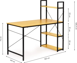 Miza nudi prostorno delovno površino ter stransko stojalo s štirimi policami za shranjevanje knjig, dokumentov ali dekoracij. Celotna konstrukcija je zasnovana z mislijo na vzdržljivost in dolgo življenjsko dobo, zahvaljujoč materialom, kot sta MDF plošča in s prašnim lakom premazano jeklo.