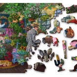 Stilna lesena sestavljanka z motivom živahne cvetličarne bo razveselila ljubitelje podrobnih ilustracij in zahtevnejših izzivov. Zaradi dvostranske izvedbe uživate v dveh sestavljankah v eni – spredaj barvita scena, polna cvetja, zadaj vzorec za sestavljanje po oblikah. Unikatni izrezi v obliki živali, likov in predmetov delujejo kot majhne figurice in dodajo sestavljanju novo dimenzijo.