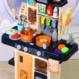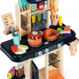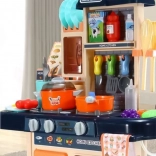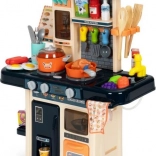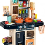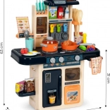 Ta moderna otroška kuhinjica ponuja vse, kar je potrebno za kuhanje »kot zares«. Po vklopu gorilnikov se zasliši zvok vrele vode in prižgejo se rdeče LED luči. Edinstven parni generator ustvari nežno paro – dovolj je, da v gorilnik nalijete vodo, pokrijete s posodo in čarovnija se lahko začne. Korito z dozirnikom vode omogoča, da iz pipe voda teče »zares«.