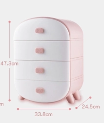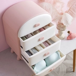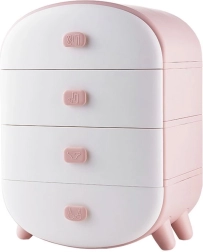 Zaobljeni robovi, sodoben dizajn in nežna rožnato-bela barva se odlično podajo v interier. Komoda je lahka, stabilna in enostavna za čiščenje – zadostuje, da jo obrišete z vlažno krpo. Lahko služi tudi kot izvirna nočna omarica ali pomočnik na toaletni mizici.