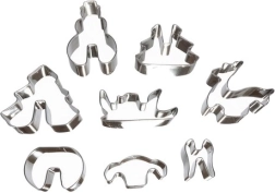 S tem univerzalnim setom pripravite efektne 3D božične piškote, ki stojijo sami in krasijo vsako praznično mizo. Modelčki so izdelani iz nerjavečega jekla, zato so trpežni, enostavni za čiščenje in zlahka obvladajo hladno testo brez trganja robov.