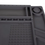 Ta večnamenska silikonska servisna podloga je idealna za popravila telefonov, prenosnikov in fino spajkanje. Zahvaljujoč 4 magnetnim žepom, razdeljenim predalčkom in namenskih mestom za izvijače boste imeli vse drobne dele in orodja vedno pod nadzorom. Nedrseč material vse drži na mestu tudi pri zahtevnejših opravilih.