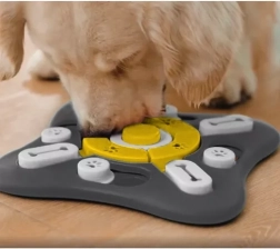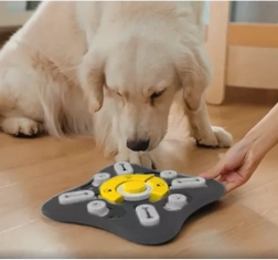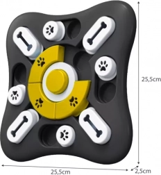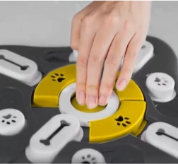 - Veliko število predalčkov - Pes odkrije priboljške v vsakem predalčku, medtem ko se osrednje sestavljanke lahko vrtijo za 360 stopinj in pritegnejo zvoki, ki jih oddajajo.
