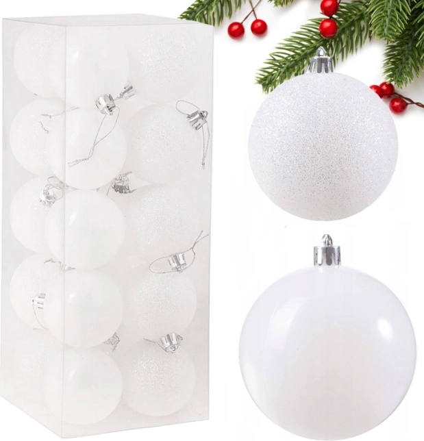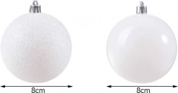 Okraski imajo premer 8 cm in so izdelani iz kakovostne plastike, ki je varna in primerna za praznične dekoracije. Kombinacija gladkih in bleščečih površin vašemu božičnemu aranžmaju doda izviren in osupljiv videz.