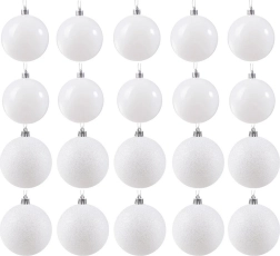 Komplet vsebuje 10 gladkih in 10 bleščečih okraskov, ki vaši jelki dodajo moderen in očarljiv videz.